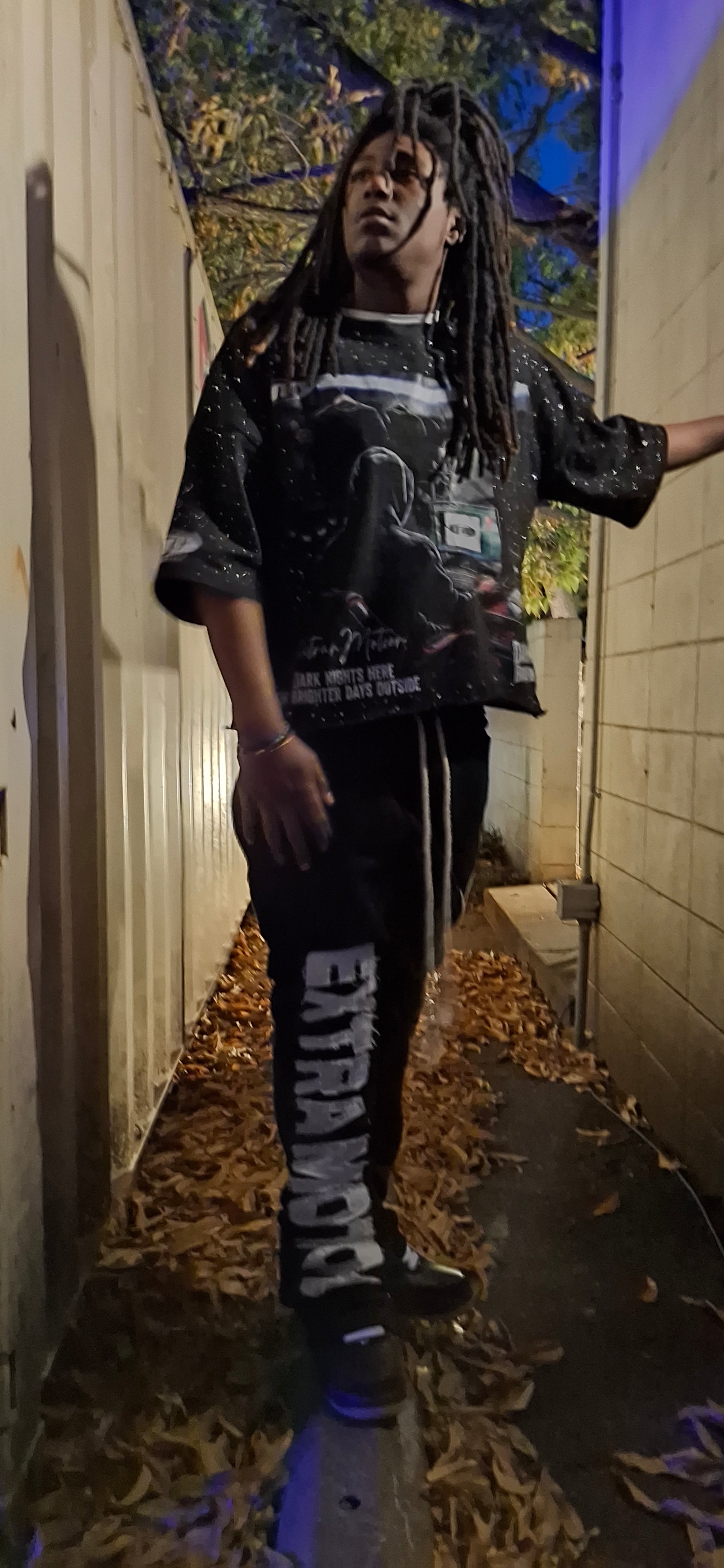 The Night Shift Tee is built for the dreamers, creators, and grinders who put in work when the world goes quiet. Featuring a bold studio-inspired graphic with a late-night setup, stacks on the desk, and the words “Dark Room, Bright Vision”, this tee captures the mindset of turning dark nights into brighter days.