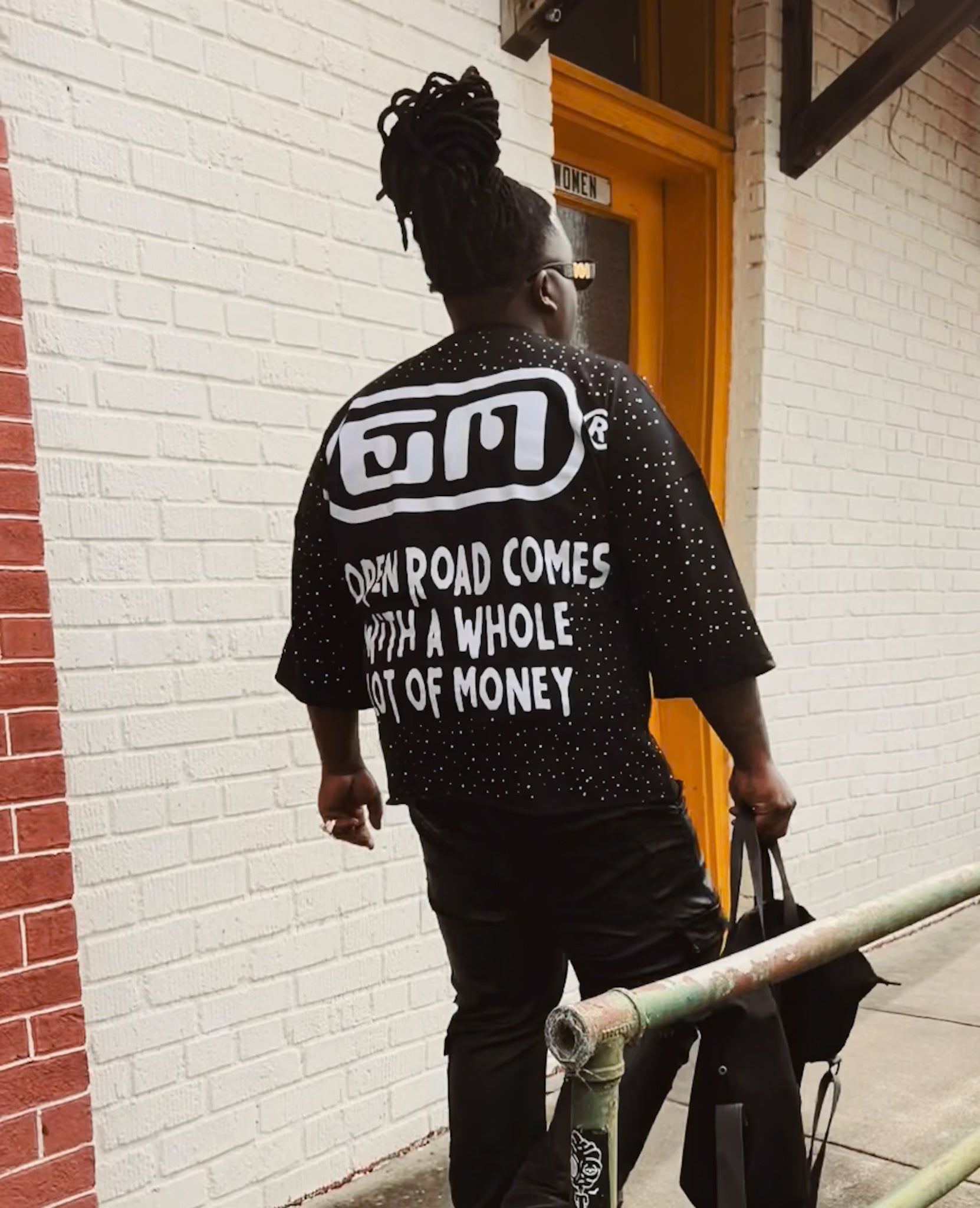 Fuel your grind with the Extra Motion Tee. Featuring a bold back graphic of a hooded figure standing in front of a car with money bags by his side, this shirt embodies the hustle, the drive, and the motion that keeps you moving forward. Designed with an all-over starry dot pattern and a raw hem cut, it delivers that modern streetwear edge.